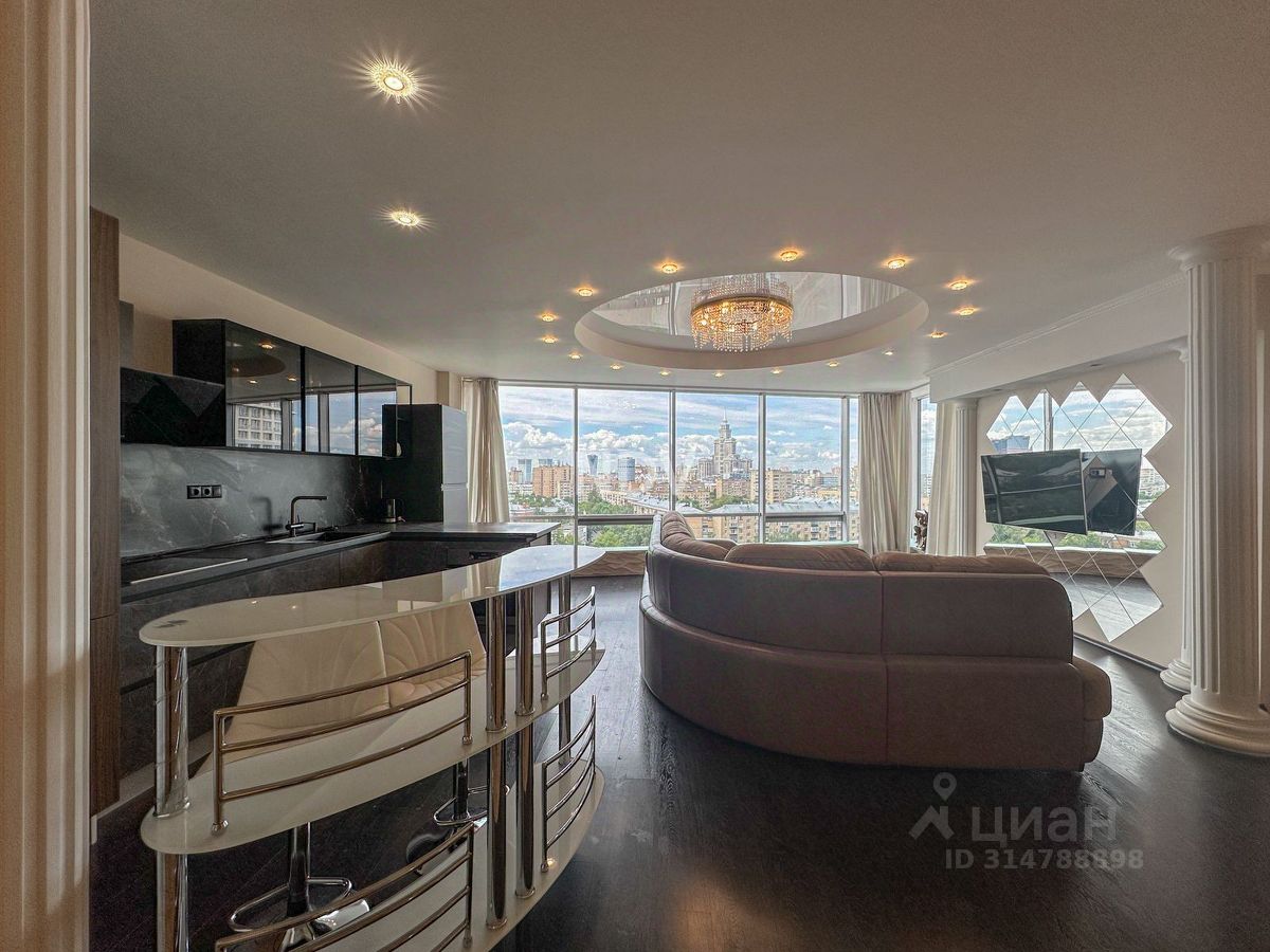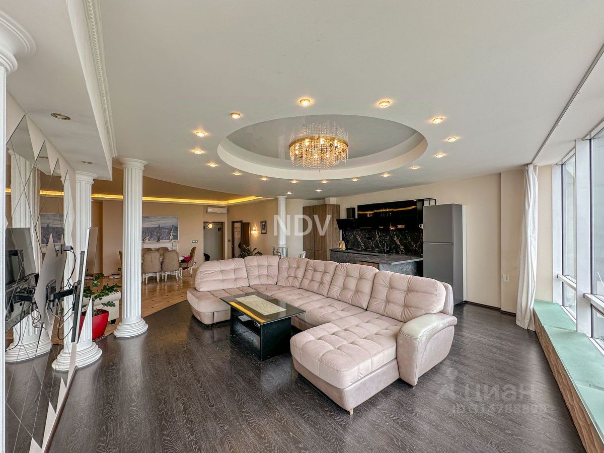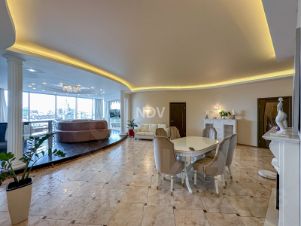 -Квартира общей площадью 145,8 м расположена на 7-м этаже. Просторная кухня -гостиная 41,13м. спальня -25,36 кв м, детская -18,5 кв м. Высокие потолки -3,2 м Многоуровневое освещение. Панорамное остекление. Свежий дизайнерский ремонт.