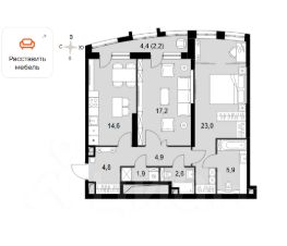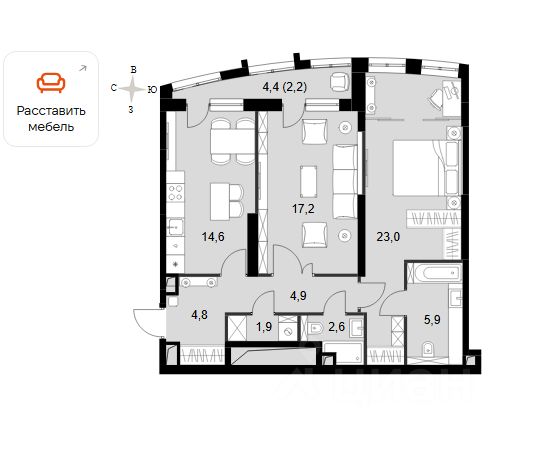 Планировка квартиры отличается своей продуманностью. Сразу при входе- ниша для установки шкафа для верхней одежды. Зоны входов в комнаты отдалены от зоны входа для еще большей приватности. И кухня, и гостиная имеют свои выходы на панорамную лоджию, где вы сможете расположиться для отдыха и любованием видом. В конце коридора самая большая комната мастер-спальня со своим санузлом. Для вашего удобства и гостевой санузел у входа в кухню, а также постирочная. Окна квартиры выходят на восток, а значит все потрясающие восходы в подарок новым жильцам.