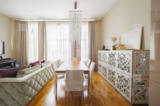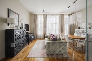 Апартамент общей площадью 92,7 кв.м. расположен на 6-м этаже. По планировке: кухня-гостиная, спальня со своей ванной комнатой и гардеробной, небольшой кабинет (можно использовать как гостевую спальню), гостевая ванная комната с зоной постирочной. Много зон для хранения. Окна выходят во двор, что обеспечивает тишину и спокойствие внутри помещения. Высокие потолки (3.4 м). Презентабельная входная группа с зоной ресепшн. В апартаменте выполнен дизайнерский ремонт с использованием дорогостоящих материалов, оборудован итальянской мебелью. Кухня встроенная со всей бытовой техникой (Miele, Neff). Квартира предлагается как меблированная, также есть возможность вывезти всю мебель. Все в отличном состоянии, заезжай и живи! Есть зафиксированное машиноместо на территории.