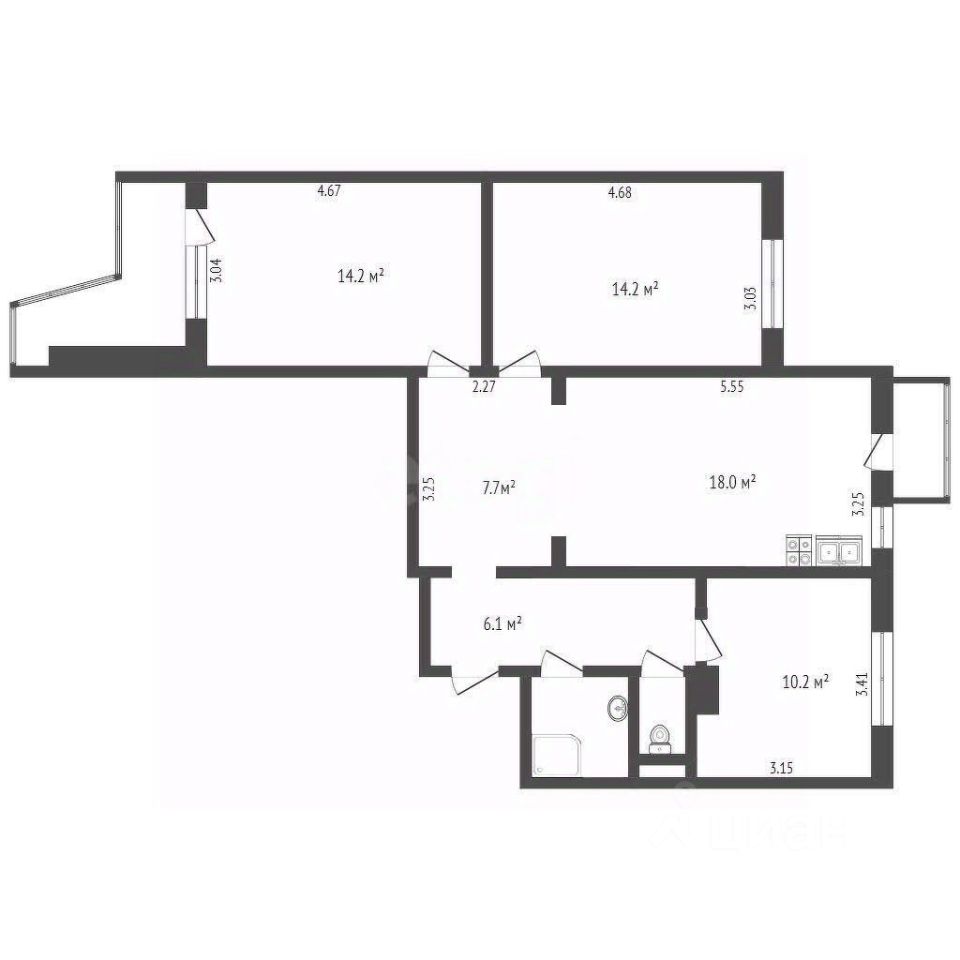 Просторная трехкомнатная квартира с кухней-гостиной и современным ремонтом.