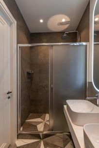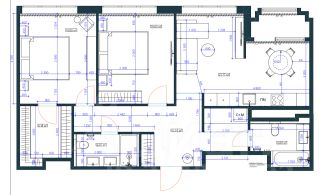 Коммуникации проходят по полу. Теплый пол в санузлах и коридоре. Апартаменты полностью обустроены мебелью и техникой. В каждой комнате установлен кондиционер. В постирочной установлены стиральная и сушильная машина. Комфортная планировка: 2 изолированные комнаты -14.80 м2 и 14.63 м2, просторная кухня-гостинная 21,77 кв.м., два санузла с ванной и душевой кабиной, отдельная постирочная . Высота потолков 3 м.