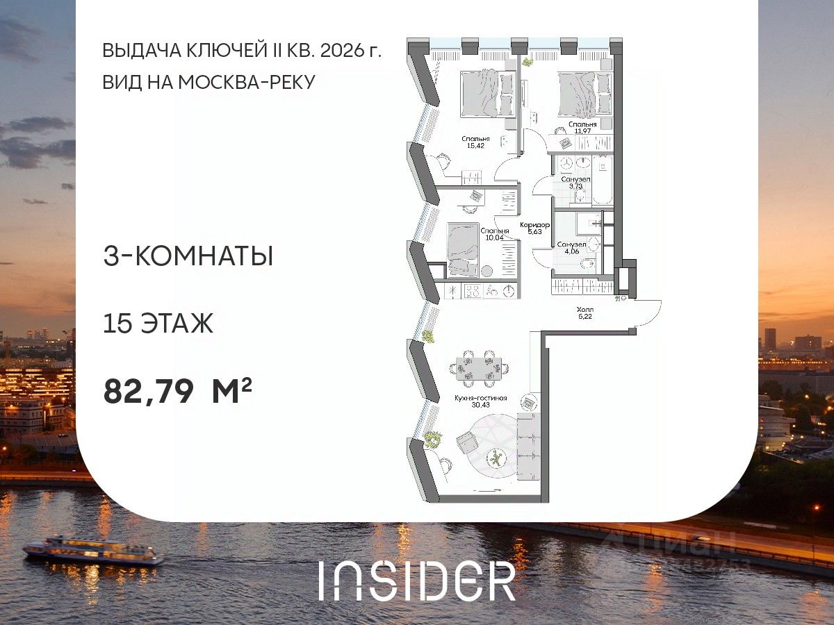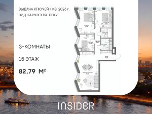 Просторный трехкомнатный лот в Доме на набережной INSIDER. Сервисные лоты с системой "умный дом" на первой линии Москвы-реки.