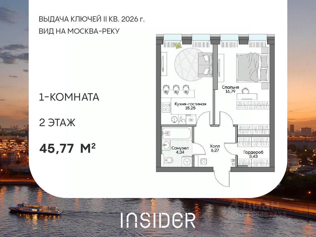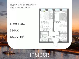 Просторный однокомнатный лот в Доме на набережной INSIDER. Сервисные лоты с системой "умный дом" на первой линии Москвы-реки.