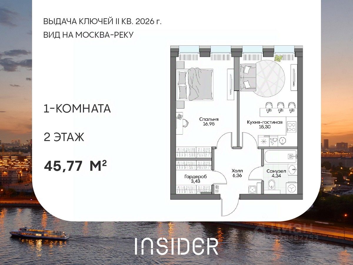 Просторный однокомнатный лот в Доме на набережной INSIDER. Сервисные лоты с системой "умный дом" на первой линии Москвы-реки.