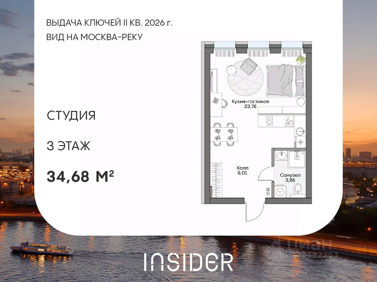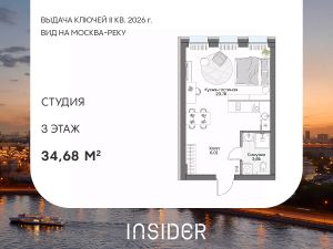 Уютный лот-студия в Доме на набережной INSIDER. Сервисные лоты с системой "умный дом" на первой линии Москвы-реки. Лот расположен на 3 этаже в секции 1.2.