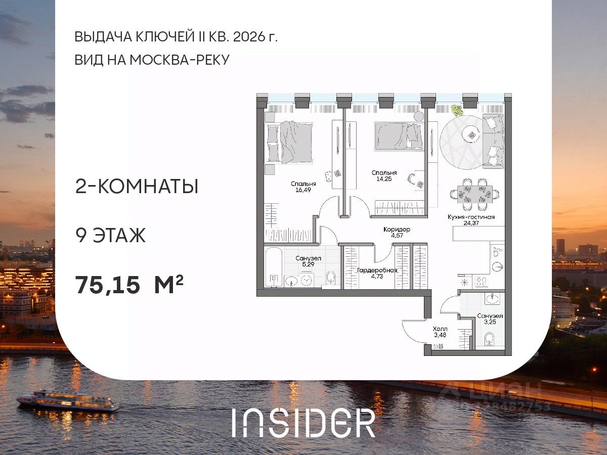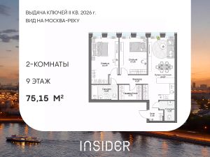Просторный лот c 2-мя спальнями в Доме на набережной INSIDER. Сервисные лоты с системой "умный дом" на первой линии Москвы-реки.