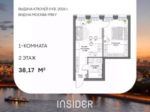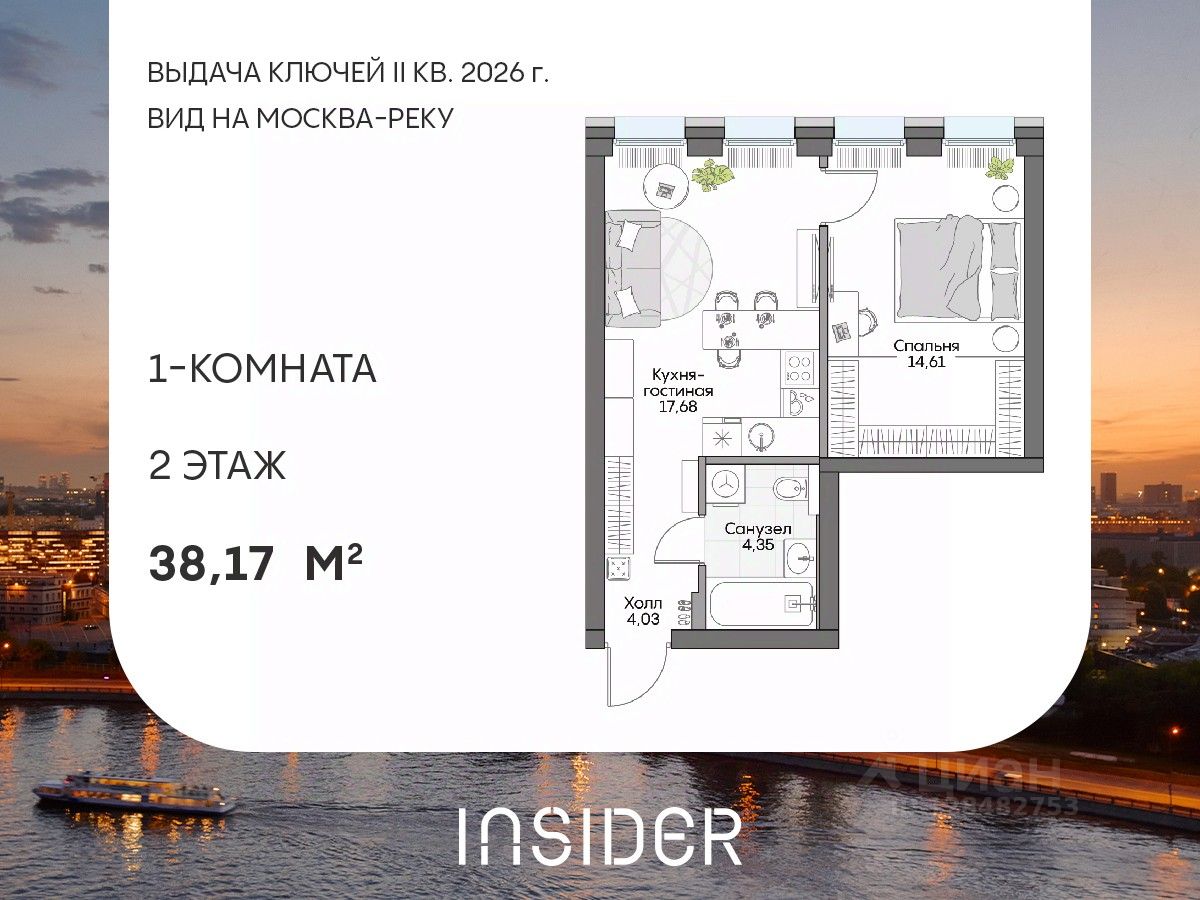 Просторный лот с 1 спальней в Доме на набережной INSIDER. Сервисные лоты с системой "умный дом" на первой линии Москвы-реки.