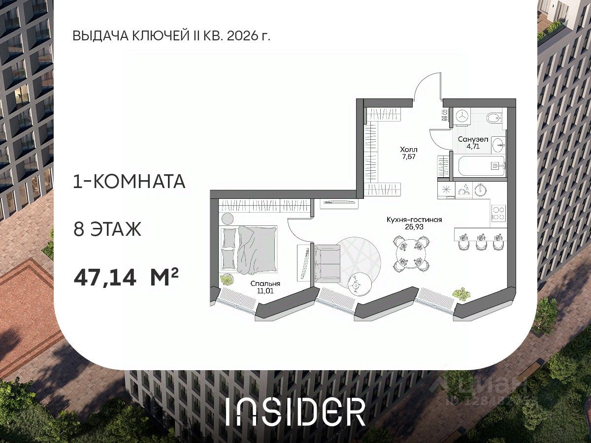 Просторный лот с 1 спальней в Доме на набережной INSIDER. Сервисные лоты с системой "умный дом" на первой линии Москвы-реки.
