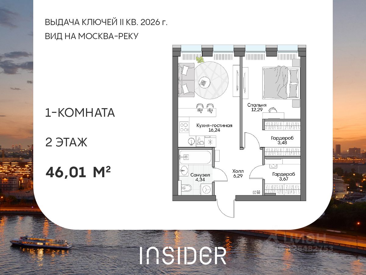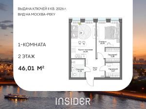 Просторный лот с 1 спальней в Доме на набережной INSIDER. Сервисные лоты с системой "умный дом" на первой линии Москвы-реки.