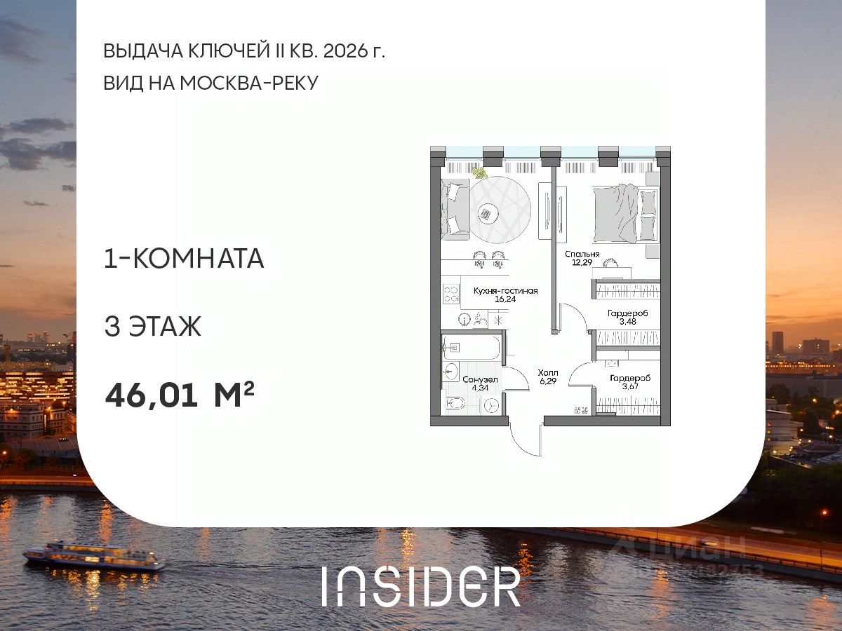 Просторный однокомнатный лот в Доме на набережной INSIDER. Сервисные лоты с системой "умный дом" на первой линии Москвы-реки.