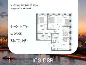 Просторный трехкомнатный лот в Доме на набережной INSIDER. Сервисные лоты с системой "умный дом" на первой линии Москвы-реки.
