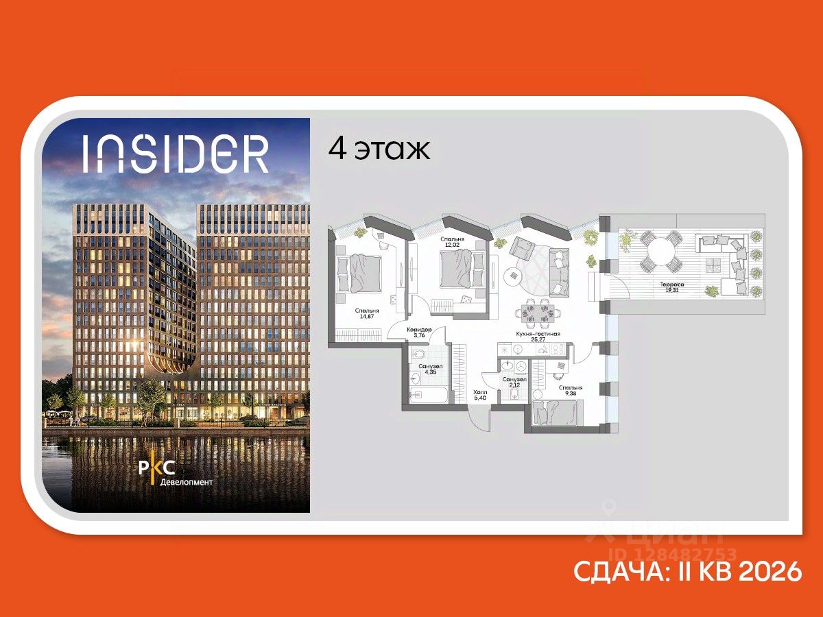 Агентам не звонить. Просторный трехкомнатный лот с отделкой премиум-класса от застройщика в Доме на набережной Инсайдер. Сервисные лоты с системой "умный дом" на первой линии Москвы-реки.