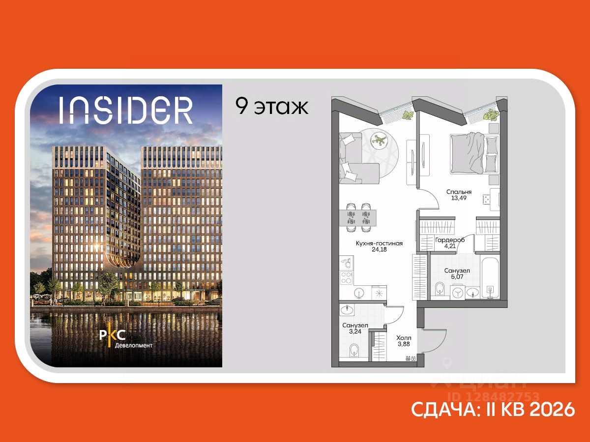 Агентам не звонить. Просторный однокомнатный лот с отделкой премиум-класса от застройщика в Доме на набережной Инсайдер. Сервисные лоты с системой "умный дом" на первой линии Москвы-реки.