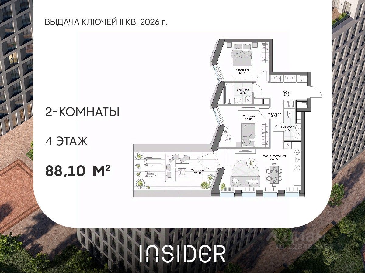 Дом на набережной INSIDER дом с уникальной и запоминающейся архитектурой. Состоит из 7 секций разной этажности от 10 до 16 этажей. На первых этажах расположены помещения коммерческой инфраструктуры, ресторан, лобби и гранд-лобби с зонами отдыха. Закрытая территория и приватный благоустроенный внутренний двор только для резидентов и их гостей.