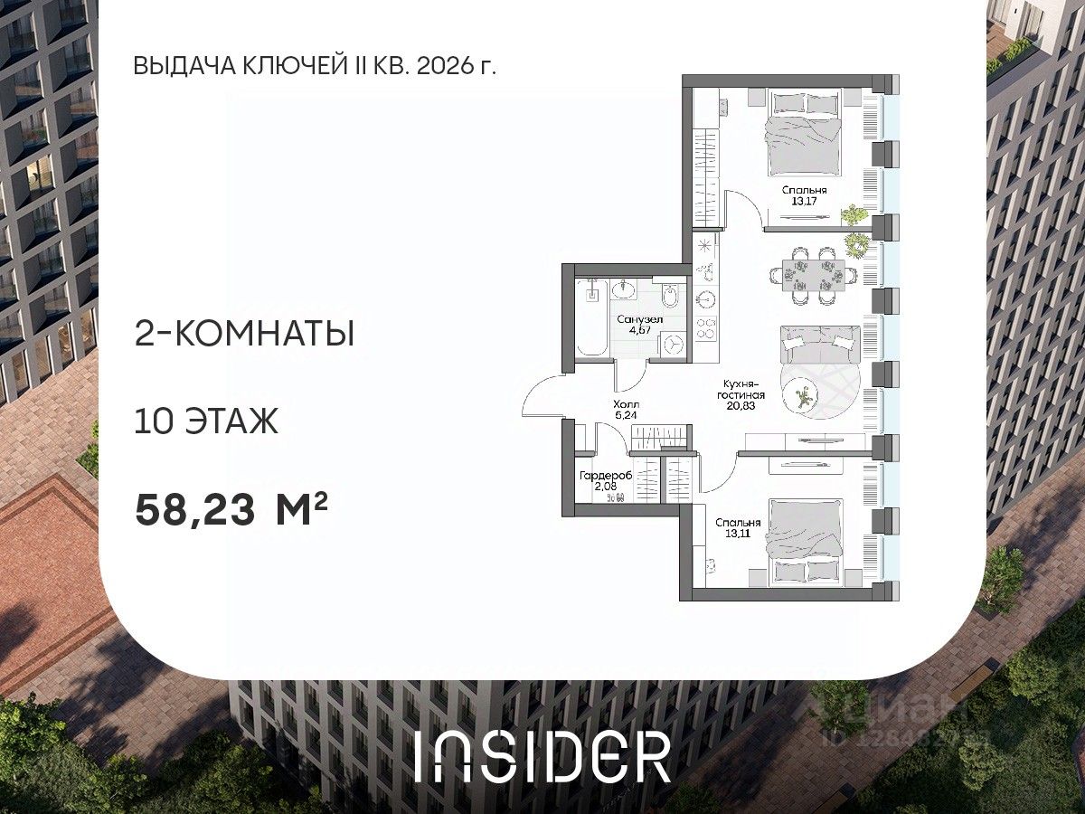 Просторный двухкомнатный лот в Доме на набережной INSIDER. Сервисные лоты с системой "умный дом" на первой линии Москвы-реки.
