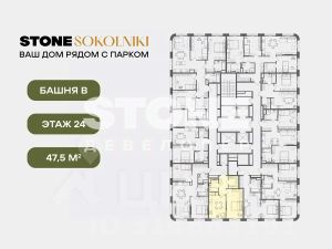 Старт продаж квартир в ЖК STONE SOKOLNIKI от девелопера STONE. В продаже функциональная и светлая односпальная квартира с кухней-гостиной и одной спальней для реализации любого дизайн-решения, идеально подходящая молодым парам и небольшим семьям. Современная архитектура проекта органично вписана в городскую среду. Концепция проекта разработана архитектурным бюро WALL Проект состоит из трех разновысотных башен высотой в 33, 28 и 24 этажа с чистой геометрией и увеличенной площадью остекления, которая позволит насладиться городской панорамой и видами на парк "Сокольники". Транспортная доступность - 10 мин. пешком до метро и БКЛ "Сокольники" и "Электрозаводская" - 12 мин. пешком до парка Сокольники - 10 мин. пешком до станции МЦД-3 "Митьково", которая позволит комфортно добираться в центр города и за его пределы Инфраструктура: В каждой входной группе предусмотрены помещения для временного хранения велосипедов, лапомойка, гостевой санузел, а также комната матери и ребенка. А колясочные появятся на каждом этаже - ведь это самое удобное решение для детей и их родителей. Планировочные решения: Планировки квартир в STONE Sokolniki создавались с учетом разнообразия современных сценариев жизни в городе. В проекте предусмотрены просторные кухни-гостиные, изолированные спальни с мастер-блоком, планировки для семей со взрослыми детьми, с двумя детьми разных возрастов. Благодаря грамотному зонированию квартир можно насладиться и временем с семьей, и уединением или, наоборот, устроить вечеринку вместе с друзьями. - Квартиры от 28 до 135 кв. м. Детский сад во дворе дома: Девелопер STONE осуществляет самостоятельный поиск оператора для детского сада, так как курирует наполнение проекта. На этапе финальной готовности будет выбран лучший оператор, отвечающий запросам качества и цены. Во всех своих проектах девелопер берет на себя ответственность за сдачу части помещений. Удобное хранение: В проекте STONE Sokolniki предусмотрена максимальная обеспеченность кладовыми. Хранения велосипедов в подземном паркинге возможно в зимний период, а летом будет организовано временное хранение на улице. Колясочные есть на каждом этаже всех трех жилых башен. - Колясочные на этаже - Кладовые для хранения Безопасная собственная территория дома, сим и паркинг: Внутри двора комфортно перемещаться пешком, все въезды в паркинг организованы по внешнему периметру. Велосипеды, самокаты и электросамокаты, детские беговелы и коляски - в приоритете, для всех колесных видов транспорта продуманы удобные маршруты движения и варианты хранения в разные сезоны. STONE - девелопер коммерческой и жилой недвижимости классов бизнес и премиум в Москве с 19-летним опытом. С 2022 года занимает лидирующую позицию на офисном рынке (рейтинг РБК). Сегодня в портфеле девелопера представлено 3 млн кв. м построенных, строящихся и проектируемых объектов, из которых более 1 млн кв. м находятся в стадии строительства. Компания имеет самый масштабный проектный портфель офисной недвижимости класса А на москов