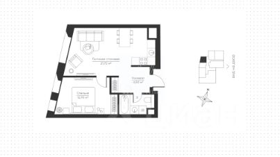 Светлые апартаменты с одной спальней общей площадью 44 м² в клубном комплексе делюкс-класса Bogen House. Апартаменты без отделки расположены на третьем этаже. Планировка: кухня-гостиная, спальня с гардеробной, ванная комната, постирочная. Панорамные окна открывают виды на тихий двор.