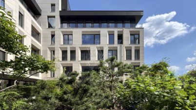 Главное о доме. Bogenhouse стоит на Озерковской набережной, и вода входит в ежедневный сценарий — утренние пробежки вдоль берега и закаты из окон. Архитектура подчёркивает тему арок: светлый камень, ритмичные проёмы и крупное остекление добавляют графики и воздуха. В лобби — натуральный камень, латунные детали, мягкий свет, стойка ресепшн и спокойные зоны для коротких встреч. Во внутреннем дворе сделали камерный сад без машин с вечерней подсветкой. Планировки держат клубный масштаб: немного резиденций, на верхних уровнях — пентхаусы с террасами. На первых этажах разместили повседневные сервисы. Паркинг со спуском на лифте связывает уровень улицы и жилые этажи.