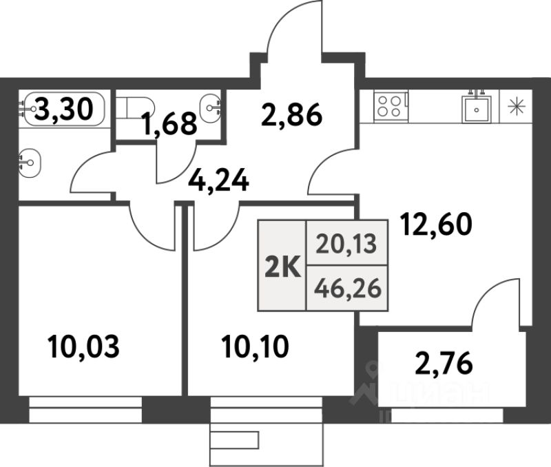 Продаётся 2-комнатная квартира в строящемся доме (Корпус 1), срок сдачи: IV-кв. 2026, общей площадью 46 кв.м., на 10 этаже. Многоквартирный жилой комплекс по адресу: г. Москва, поселение Сосенское, поселок Газопровод, улица Лесные Поляны 5-я, земельный участок 20