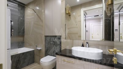 Апартаменты с двумя спальнями общей площадью 75 м² в квартале бизнес-класса "Царская площадь". Апартаменты расположены на 10-м этаже в корпусе "Александровский". Выполнен ремонт в стиле современной классики, стены украшают декоративные молдинги и графика, многоуровневые потолки — венчающий карниз.