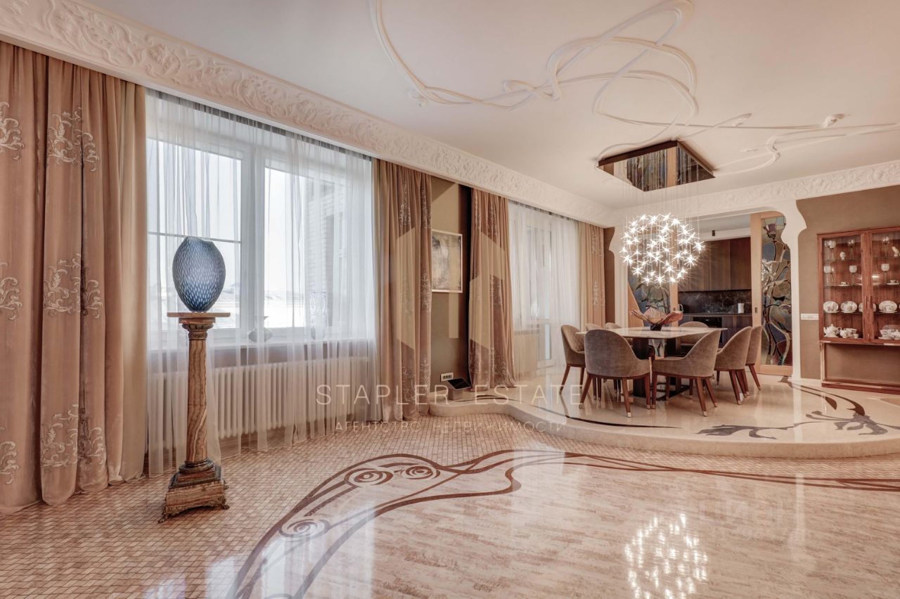 Представляем вашему вниманию роскошную квартиру общей площадью 274,5 м, выполненную в изысканном стиле Русского Модерна. Этот уникальный объект сочетает в себе утонченность и комфорт.