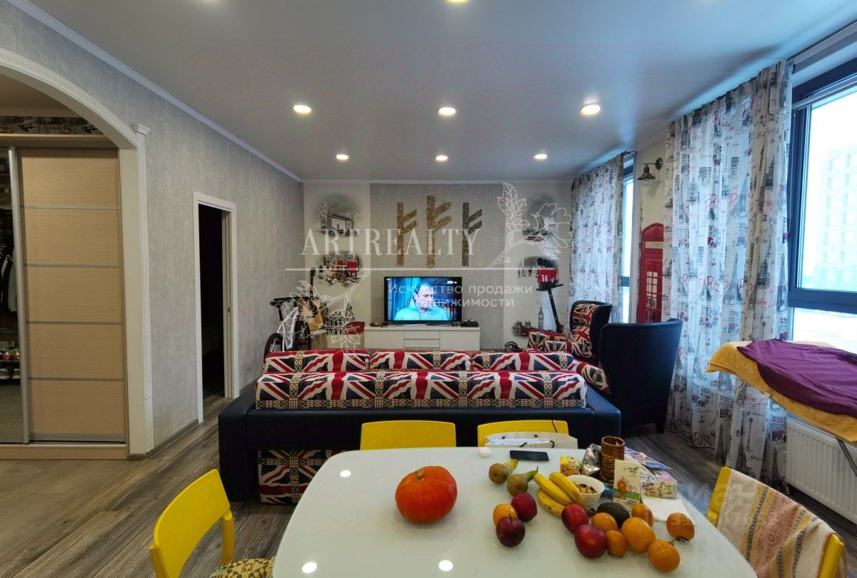 Продается со всей мебелью, как есть. Реализован дизайнерский ремонт. Сам проект реализован в Лондонском стиле, планировка продумана так, что включает в себя прихожую со шкафом-купе, огромную кухню-гостиную 40 кв.м, просторный диван трансформер, кресло, телевизор с большим экраном. Обратите внимание на освященные руны Победы над ним и отдельную спальню с приточно-вытяжной вентиляцией , санузел с глубокой ванной, застекленный балкон 4 кв.м.