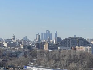 Большая кухня-гостиная и еще две отдельные комнаты. Видовые окна от пола до потолка, смотрят на три стороны света, от северо востока по окружности до северо запада! Прекрасный вид!