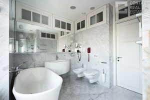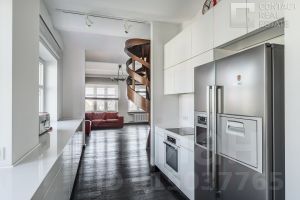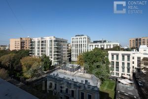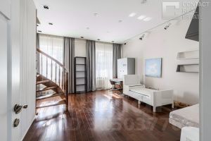 Квартира занимает этаж целиком, а свой уникальный для дома формат приобрела путем объединения трех квартир и проведения полной реновации конструктивных элементов с заменой всех инженерных систем, окон и дверей на современные европейские аналоги, внедрения дополнительных современных систем кондиционирования, систем охраны и безопасности.