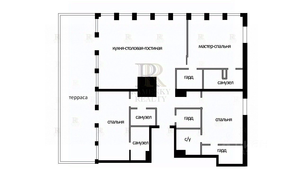 ПЛАНИРОВКА: кухня-столовая, гостиная, три спальные комнаты, четыре санузла, холл, гардеробные.