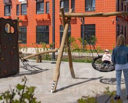 В проекте предусмотрена медленная зона для электросамокатов — с 7 утра до полуночи при въезде на территорию квартала скорость электросамокатов автоматически снижается до 15 км/ч. Артикул 931695 (Застройщик АО "Специализированный застройщик "Волжский парк"")