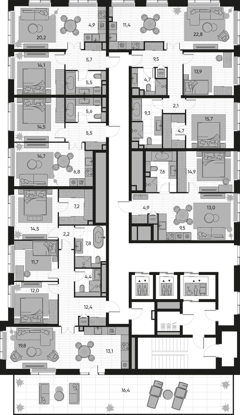Яркая архитектура с переменной высотностью от 7 до 22 этажей от именитого бюро APEX формирует запоминающийся облик проекта.