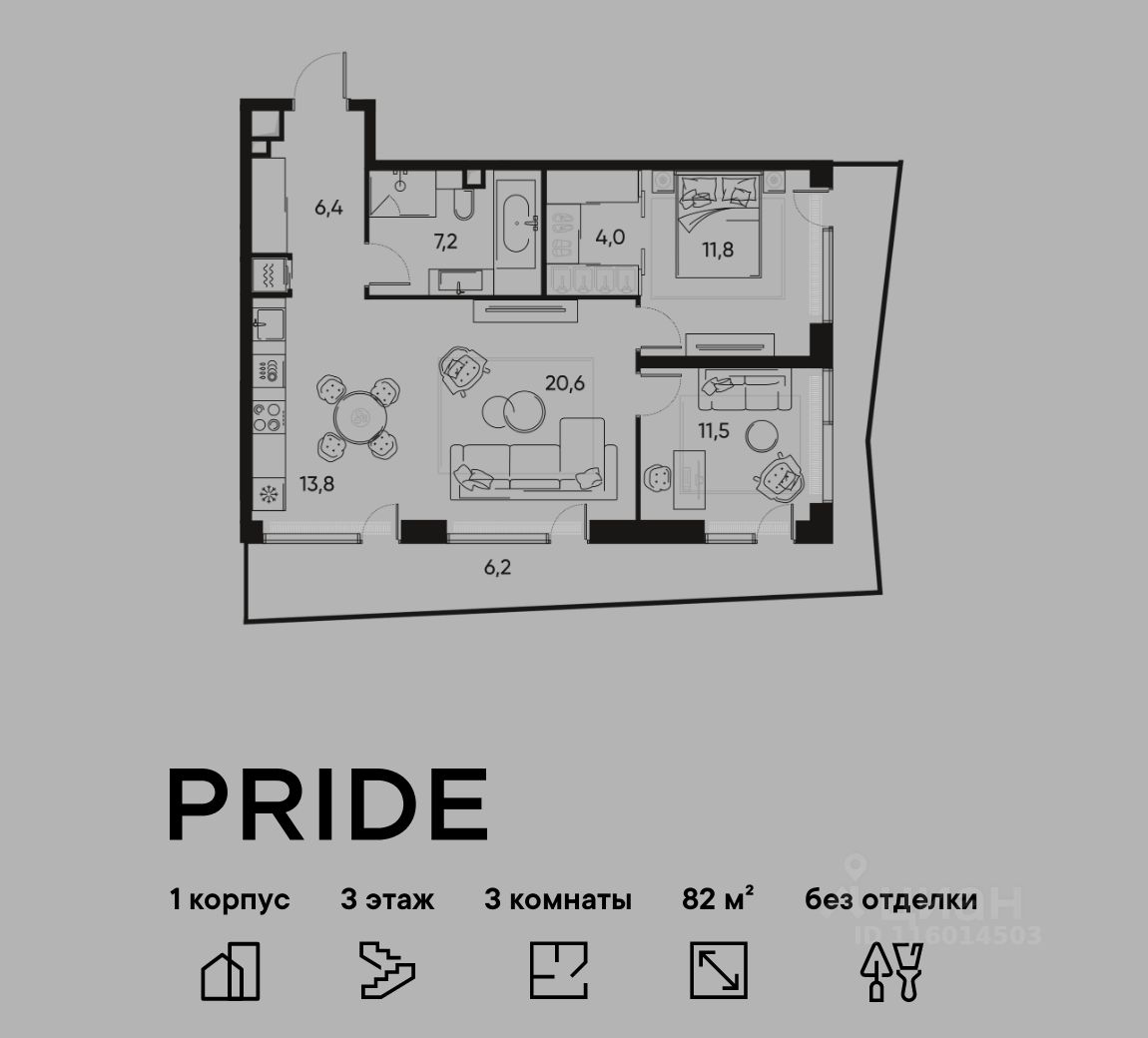 В премиальном жилом квартале PRIDE продается 3-комнатная квартира в 1 корпусе, на 3 этаже, в секции 10. Её общая площадь составляет 82 м². Пространство включает 2 уютные спальни 11,5 м², 11,8 м², просторную кухню-гостиную 34,4 м² и ванную комнату 7,2 м². Ключи в 2026 году.