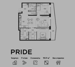 В премиальном жилом квартале PRIDE продается 3-комнатная квартира в 1 корпусе, на 9 этаже, в секции 10. Её общая площадь составляет 90.9 м². Пространство включает 2 уютные спальни 13,5 м², 12,9 м², просторную кухню-гостиную 31,1 м² и 2 ванные комнаты 7,9 м² и 4,9 м². Ключи в 2026 году.