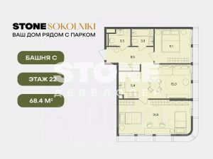 Старт продаж квартир в ЖК STONE SOKOLNIKI от девелопера STONE. В продаже просторная двуспальная квартира с кухней-гостиной и двумя спальнями для реализации любого дизайн-решения, идеально подходящая молодым парам, которые только планируют пополнение, а также небольшим семьям, где малыш уже подрастает. Современная архитектура проекта органично вписана в городскую среду. Концепция проекта разработана архитектурным бюро WALL Проект состоит из трех разновысотных башен высотой в 33, 28 и 24 этажа с чистой геометрией и увеличенной площадью остекления, которая позволит насладиться городской панорамой и видами на парк "Сокольники". Транспортная доступность - 10 мин. пешком до метро и БКЛ "Сокольники" и "Электрозаводская" - 12 мин. пешком до парка Сокольники - 10 мин. пешком до станции МЦД-3 "Митьково", которая позволит комфортно добираться в центр города и за его пределы Инфраструктура: В каждой входной группе предусмотрены помещения для временного хранения велосипедов, лапомойка, гостевой санузел, а также комната матери и ребенка. А колясочные появятся на каждом этаже - ведь это самое удобное решение для детей и их родителей. Планировочные решения: Планировки квартир в STONE Sokolniki создавались с учетом разнообразия современных сценариев жизни в городе. В проекте предусмотрены просторные кухни-гостиные, изолированные спальни с мастер-блоком, планировки для семей со взрослыми детьми, с двумя детьми разных возрастов. Благодаря грамотному зонированию квартир можно насладиться и временем с семьей, и уединением или, наоборот, устроить вечеринку вместе с друзьями. - Квартиры от 28 до 135 кв. м. Детский сад во дворе дома: Девелопер STONE осуществляет самостоятельный поиск оператора для детского сада, так как курирует наполнение проекта. На этапе финальной готовности будет выбран лучший оператор, отвечающий запросам качества и цены. Во всех своих проектах девелопер берет на себя ответственность за сдачу части помещений. Удобное хранение: В проекте STONE Sokolniki предусмотрена максимальная обеспеченность кладовыми. Хранения велосипедов в подземном паркинге возможно в зимний период, а летом будет организовано временное хранение на улице. Колясочные есть на каждом этаже всех трех жилых башен. - Колясочные на этаже - Кладовые для хранения Безопасная собственная территория дома, сим и паркинг: Внутри двора комфортно перемещаться пешком, все въезды в паркинг организованы по внешнему периметру. Велосипеды, самокаты и электросамокаты, детские беговелы и коляски - в приоритете, для всех колесных видов транспорта продуманы удобные маршруты движения и варианты хранения в разные сезоны. STONE - девелопер коммерческой и жилой недвижимости классов бизнес и премиум в Москве с 19-летним опытом. С 2022 года занимает лидирующую позицию на офисном рынке (рейтинг РБК). Сегодня в портфеле девелопера представлено 3 млн кв. м построенных, строящихся и проектируемых объектов, из которых более 1 млн кв. м находятся в стадии строительства. Компания имеет самый масштабный пр
