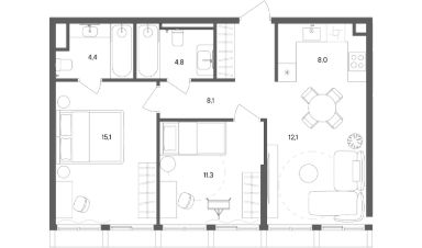 В продаже просторная квартира с кухней-гостиной и двумя спальнями в жилом комплексе бизнес+ класса СТОУН Сокольники. Идеально подойдет молодым парам, которые только планируют пополнение, а также семьям, где малыш уже подрастает.