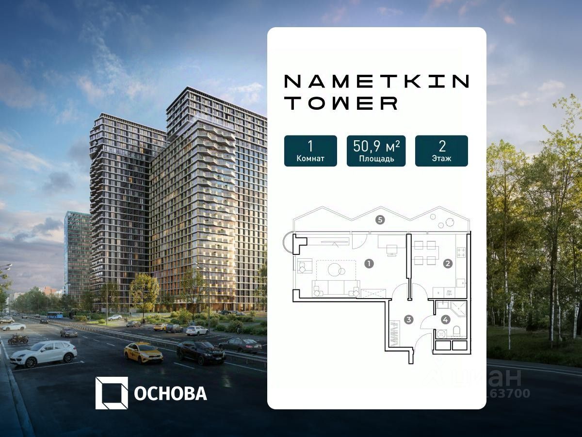 Продаются 1-к апартаменты площадью 50.9 кв.м. на 2-м этаже 29 этажного дома в "NAMETKIN TOWER" от ГК ОСНОВА.
