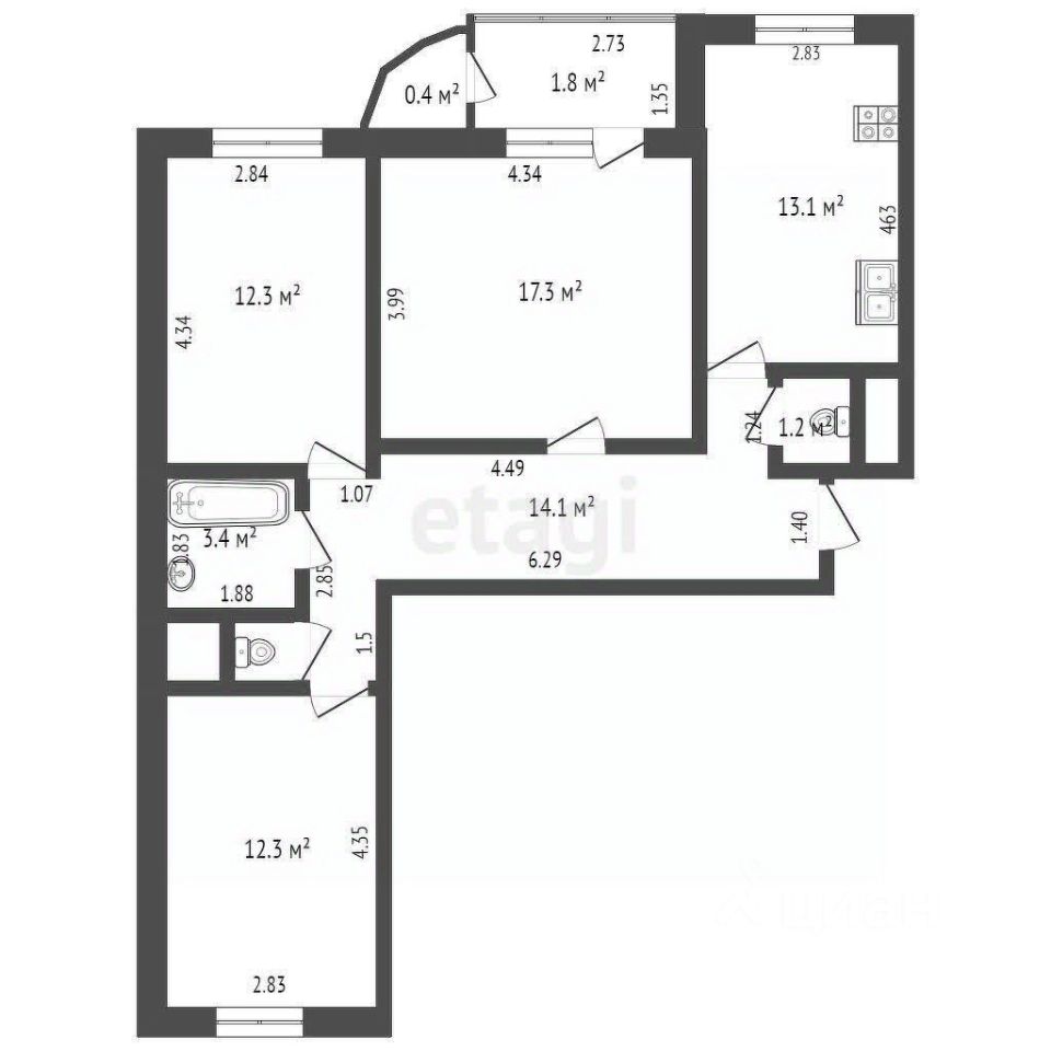 Предлагаю вашему вниманию 3 комнатную квартиру на 13 этаже в 20 этажном доме.