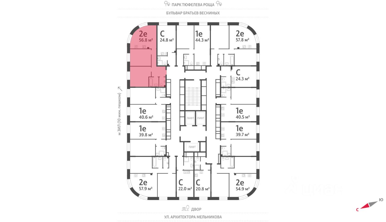 Продаётся 2-комнатная квартира в доме 18 (ЗИЛАРТ ГРАНД) ЖК "ЗИЛАРТ" общей площадью 56.8 кв. метров на 21 этаже.