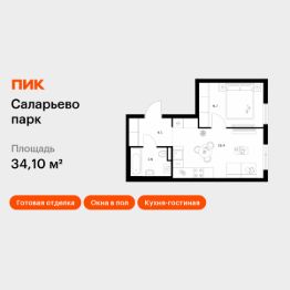 Продаётся 1-комн. квартира площадью 34,1 кв.м на 18 этаже 18 этажного дома (Корпус 74.1, Секция 1) проекта ПИК Саларьево парк. Светлый просторный подъезд на уровне земли, функциональная планировка, большие окна, c отделкой.
