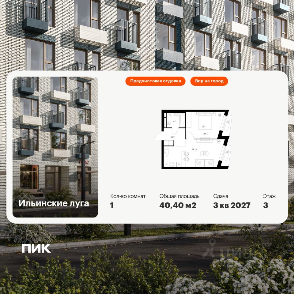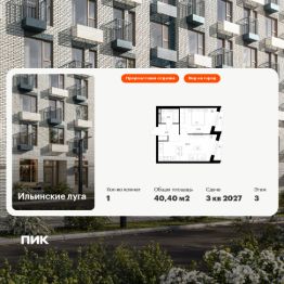 Продаётся 1-комн. квартира площадью 40,4 кв.м на 3 этаже 9 этажного дома (Корпус 4.2, Секция 5) проекта ПИК Ильинские луга. Светлый просторный подъезд на уровне земли, функциональная планировка, большие окна, предчистовая отделка.