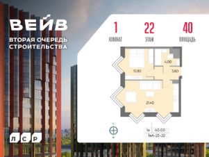 Продается 1-комнатная квартира общей площадью 40 кв. метров на 22 этаже жилого комплекса ВЕЙВ. Комплекс располагается на юге Москвы в районе Москворечье-Сабурово. В пешей доступности расположены станция МЦД "Москворечье" и станция метро "Борисово". Для автомобилистов есть удобное сообщение с Каширским шоссе.