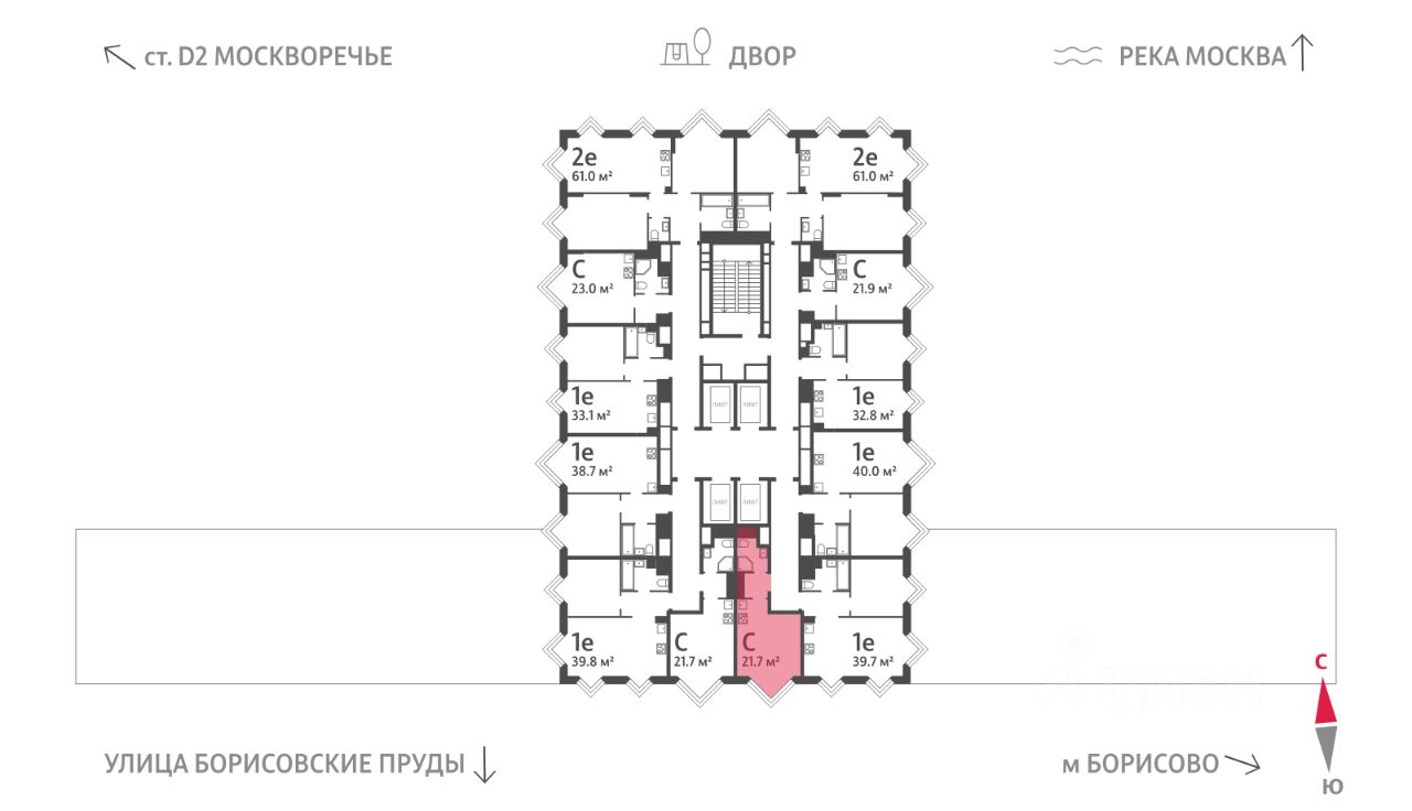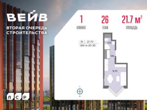 Продается квартира-студия общей площадью 21.7 кв. метров на 26 этаже жилого комплекса ВЕЙВ. Комплекс располагается на юге Москвы в районе Москворечье-Сабурово. В пешей доступности расположены станция МЦД "Москворечье" и станция метро "Борисово". Для автомобилистов есть удобное сообщение с Каширским шоссе.