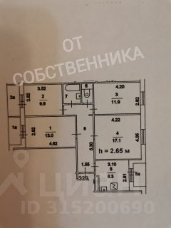 Квартира в хорошем состоянии. Общая площадь квартиры 75,3 кв.м. Все комнаты изолированные: 17,1 кв.м., 13кв.м., 11,9 кв.м., 9,9 кв.м. Кухня 8,3 кв. м. Санузел раздельный. Две лоджии в комнатах и один балкон на кухне. Просторный длинный коридор 11,2 кв.м. Окна выходят на две стороны - в тихие дворы.