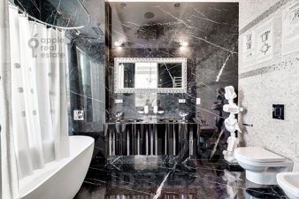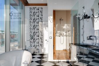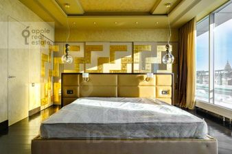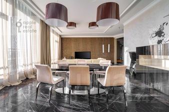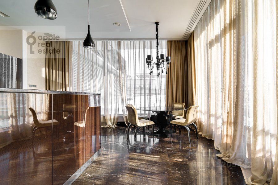 Уникальный видовой пентхаус 404.8 кв.м. с террасой 180 кв.м. по всему периметру и эксклюзивным дизайном в ориентальном стиле в престижном ЖК Четыре ветра. Планировочное решение включает: просторную гостиную 50 кв.м, кухню-столовую более 30 кв.м, кабинет, 4 спальни с ванными комнатами и гардеробными, комнату для няни, SPA зону с комнатой для йоги и хамам. Панорамные окна выходят на 4 стороны света. Один из самых современных домов в районе Тверской улицы. Интерьер пентхауса выполнен с использованием редких пород древесины, итальянской плитки, мрамора и кожи. Пространство меблировано эксклюзивными предметами интерьера. Имеется 6 машиномест в подземном паркинге.