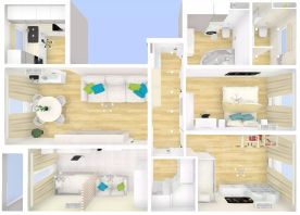 В квартире нет мебели, поэтому стиль по итогу может быть любой - от лофта до классического. На рендерах показана мебель и техника, которую мы планировали ставить, у вас может быть иное мнение о назначении помещений и о их наполнении мебелью.