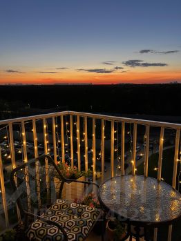 ПАНОРАМНЫЕ ОКНА в гостиной с большим балконом и видом на лес и закаты.