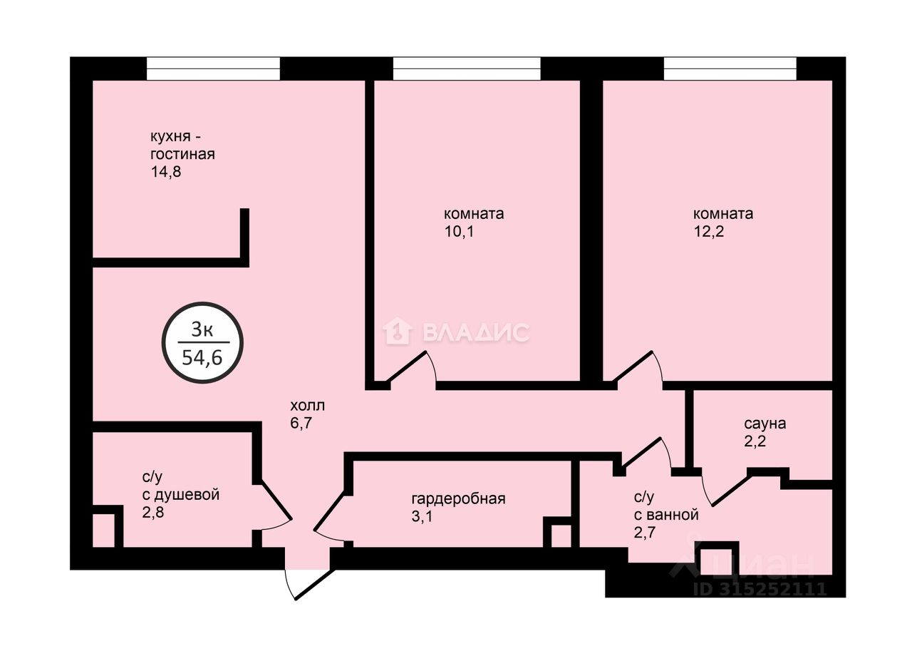 - две просторные спальни 10,1 и 12,2 м2