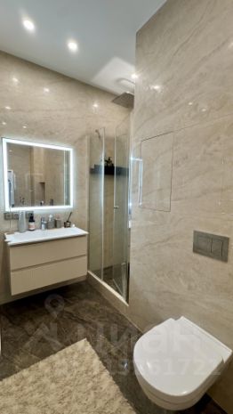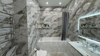 Общая площадь 73,7 квадратных метров, просторная кухня-гостиная 21 кв.м., 2 спальни, отдельная гардеробная и 2 санузла с ванной и душевой кабиной.