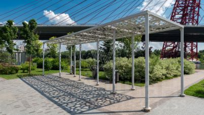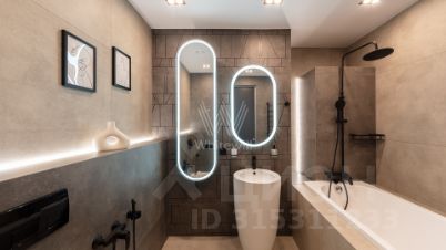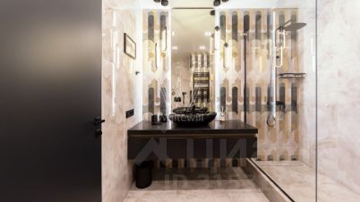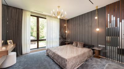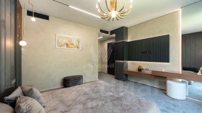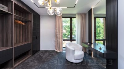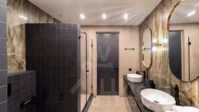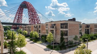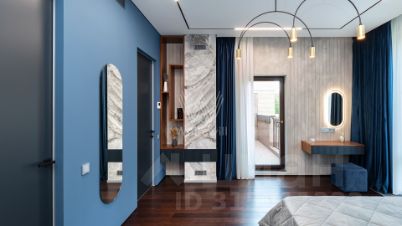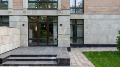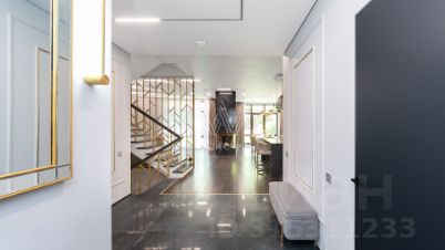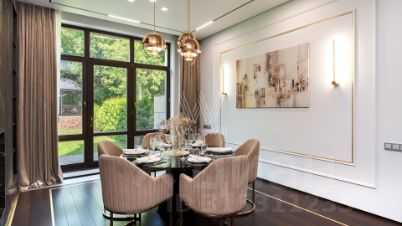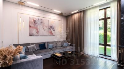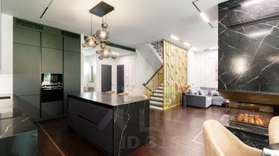 Трёхуровневый городской таунхаус общей площадью 353 м² в комплексе делюкс-класса "Берег Столицы" на территории заповедника "Серебряный бор". Таунхаус расположен на земельном участке, где обустроена зона отдыха с кованой беседкой. Интерьер оформлен в современном стиле. В гостиной установлен дровяной камин с отделкой из латуни. Благодаря панорамным окнам и потолкам высотой 3,4 метра пространство наполнено светом и воздухом. Из окон открываются виды во двор и на Живописный мост.