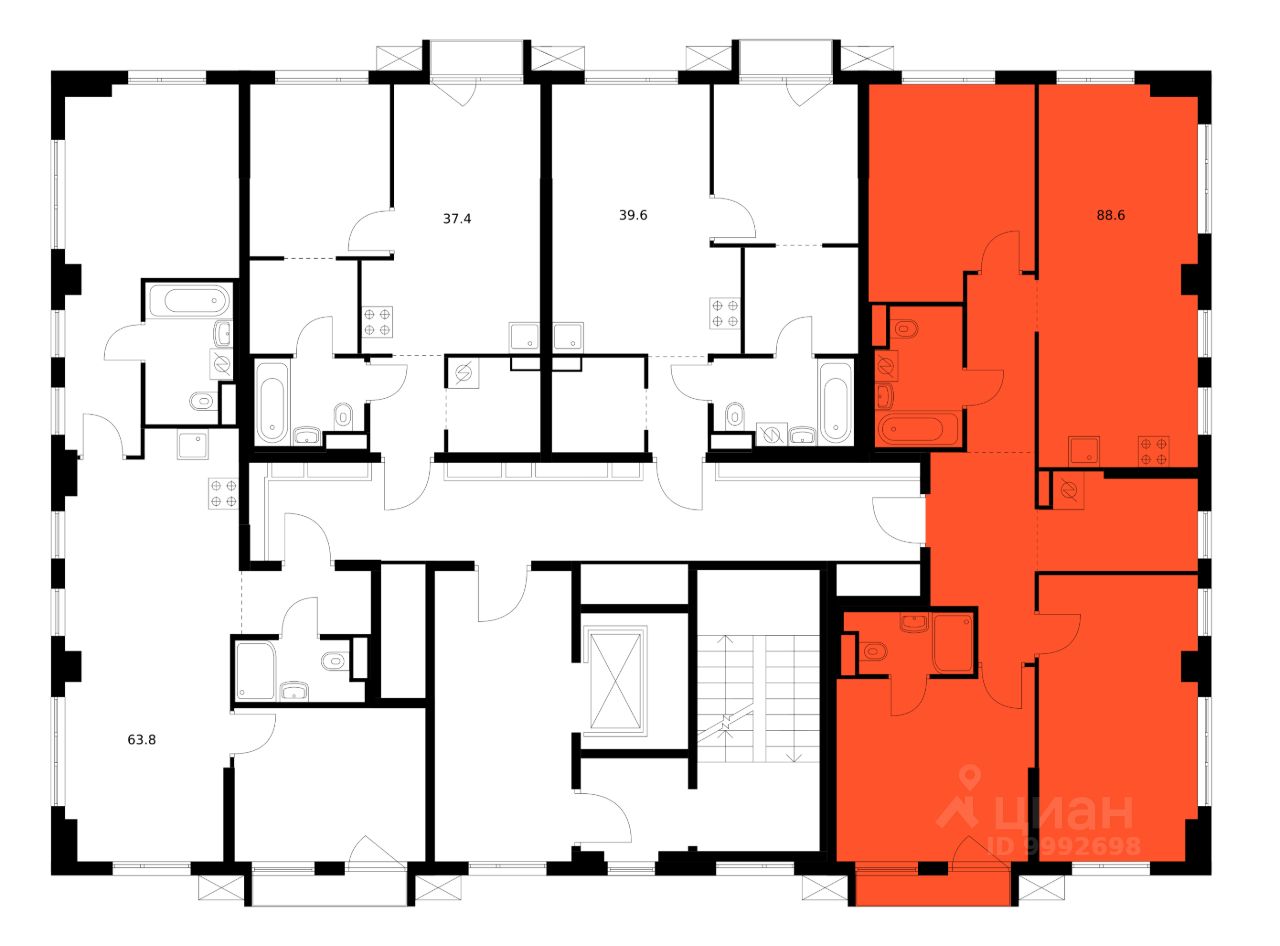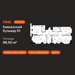 Продаётся 3-комн. квартира площадью 88,6 кв.м на 9 этаже 9 этажного дома (Корпус 3.4, Секция 1) проекта ПИК Кавказский бульвар 51. Светлый просторный подъезд на уровне земли, функциональная планировка, большие окна, предчистовая отделка.